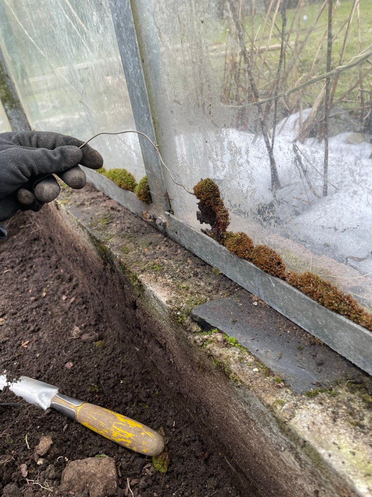 I am about 8 hours into cleaning the greenhouse, and I am starting with a confession – again, when saying it was a bit more complicated than what I had imagined, hahaha. This time, it is about the glass in the greenhouse and the bugs. (After two days of headaches, my muscles have recovered from the shoveling.) Turns out that polishing this old greenhouse isn’t the easiest task. There are so many tight corners and edges between the glass and the metal frames -perfect places for dirt to inhabit but almost impossible to reach. So far, a dish brush and a sponge have been irreplaceable friends for me.