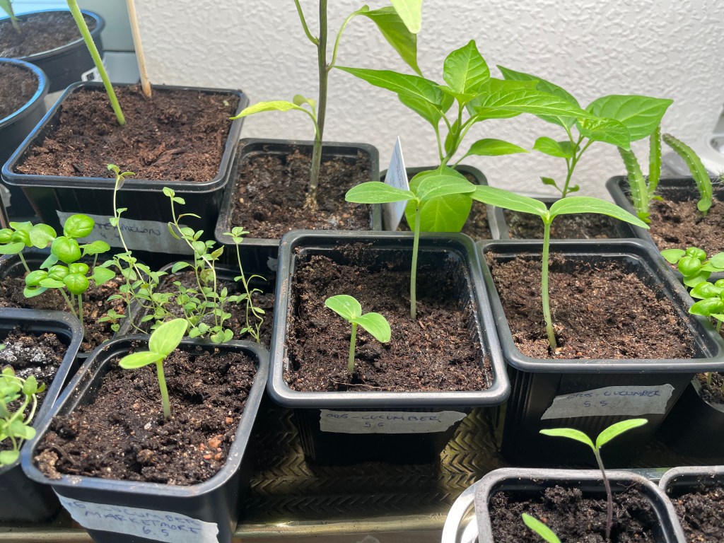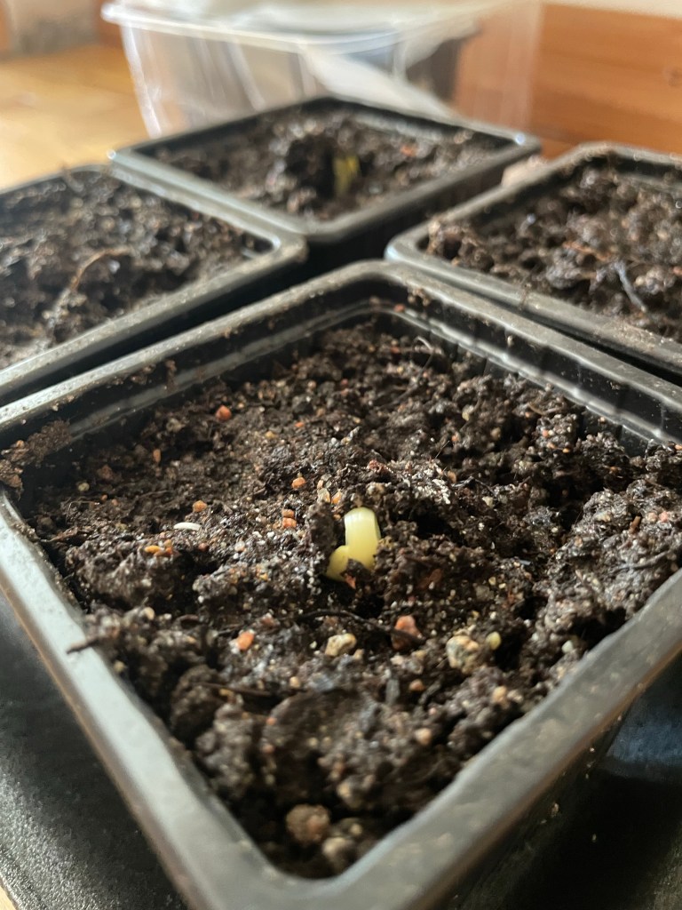 Today, the plants will spend 10 hours outside for their 7th hardening-off day. This morning was such a happy morning in general because both the older and newer sprouts are doing so well! Take a look! π