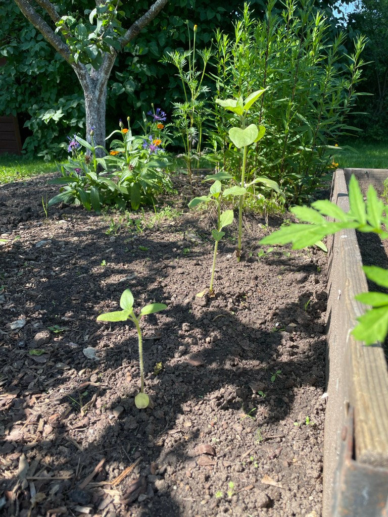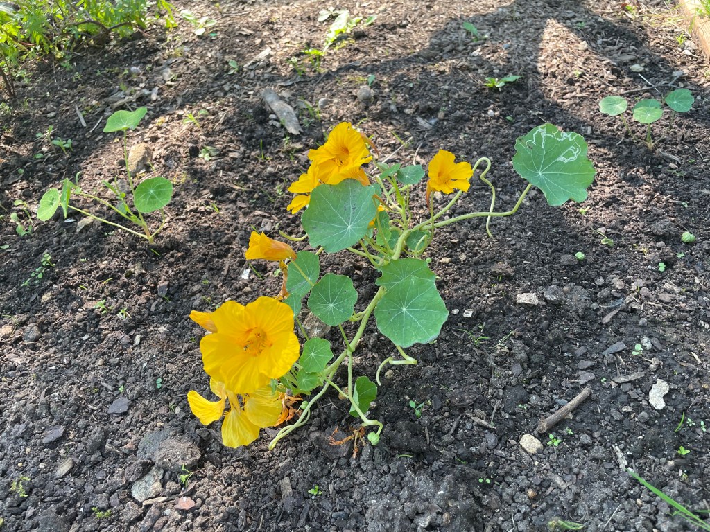 And then, some flowers to brighten up the garden with a few newbies. Find there sunflowers, nasturtium, and small calendulas. Although I might have sown the calendula seeds quite late in the summer, I am really hoping that they will still have time to bloom this year.