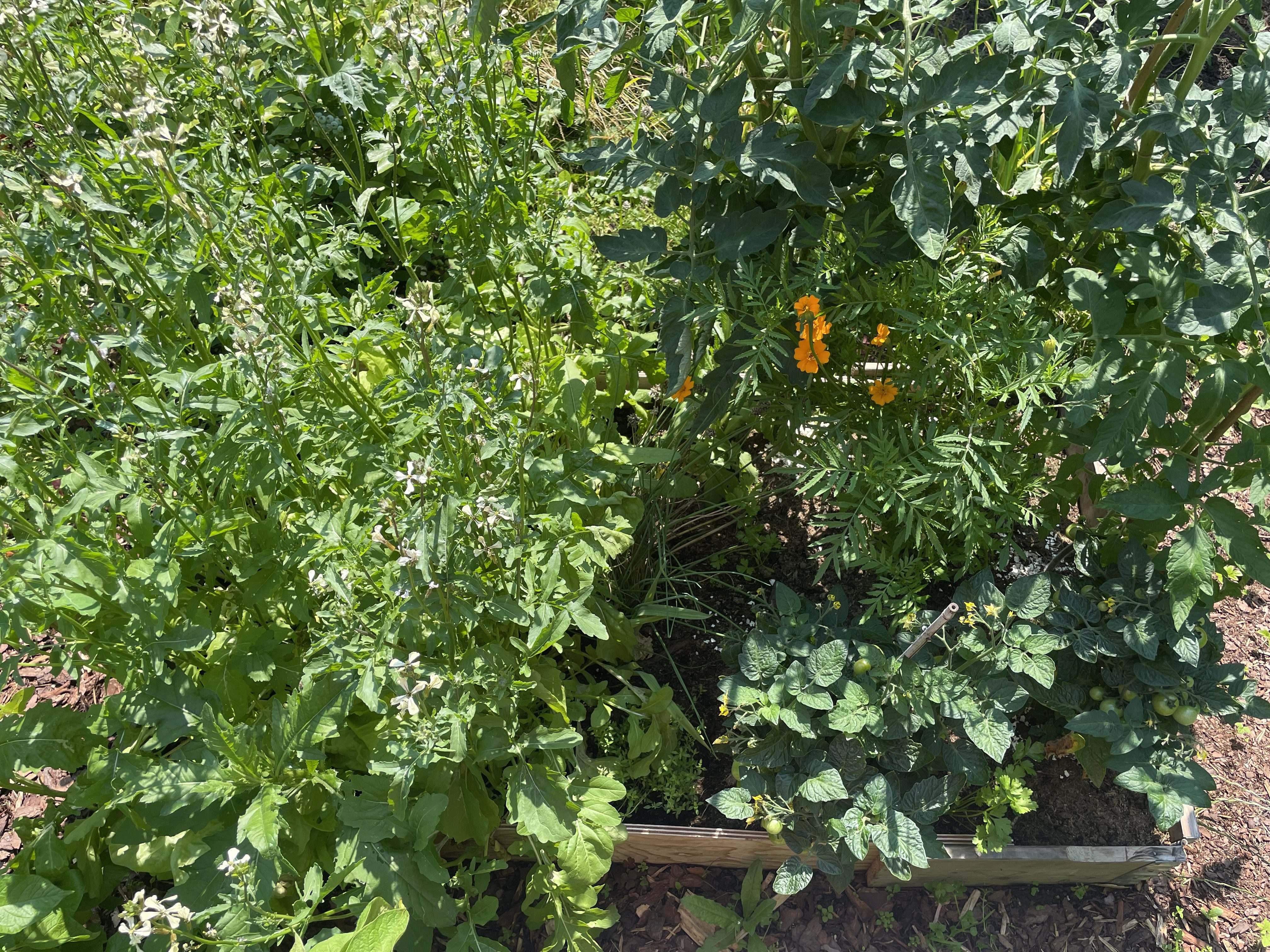 Yes, I know I must do some trimming here because this bed looks like a mess but nonetheless, everything is (growing) in order.