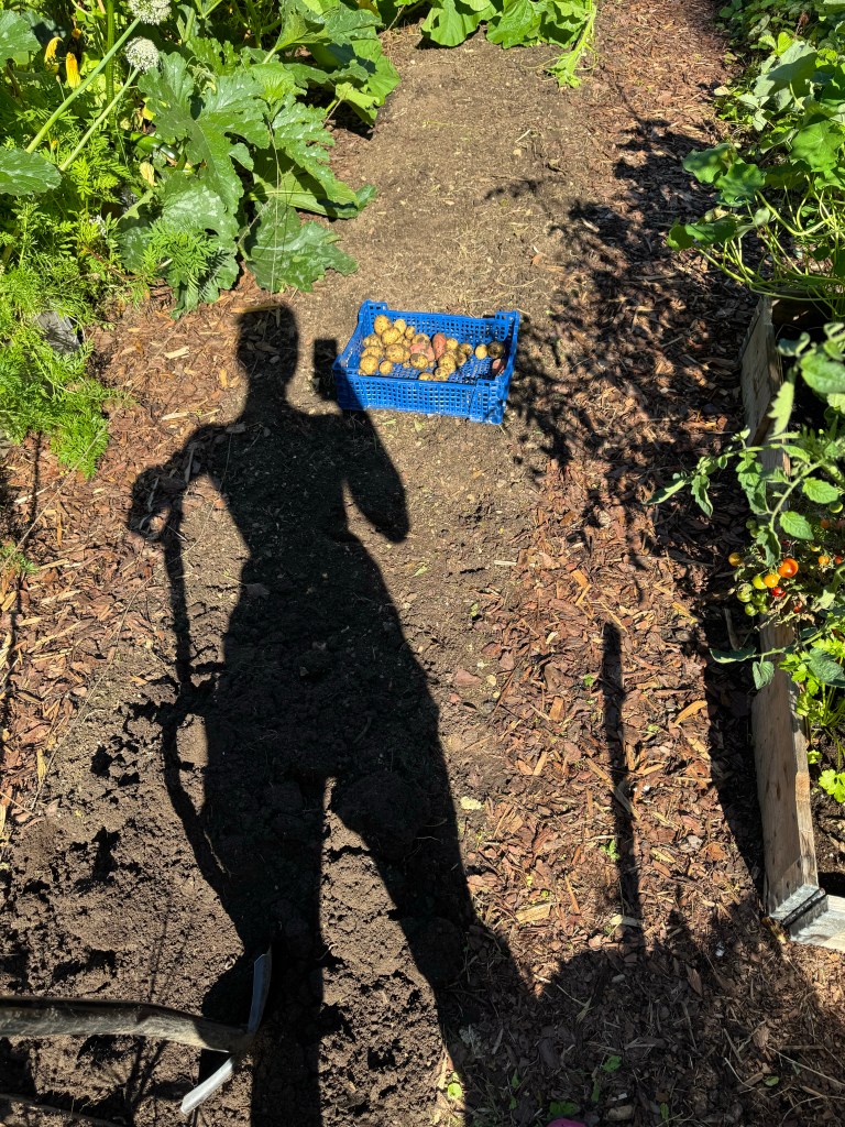 I am big on enjoying potatoes, so naturally, I was really looking forward to having them grow in the garden. Unfortunately, the potatoes suffered from a potato blight that viciously attacked my plants early in the summer. A weak variety, I was told. Apparently, not all potatoes get this disease, but this variety “has been in the family” very long. So, not store-bought seed potatoes. I hadn’t thought of the potato blight as a potential threat because I never remembered having this issue in the years before. I guess that’s because I wasn’t very big on gardening before. Whatever had happened before, this time, once I noticed a strange colour on the leaves, it wouldn’t stop from rapidly spreading. Very soon, I would start noticing it in the tomatoes growing right next to the potatoes, too. Of course, I hadn’t thought of this either; these buddies come from the same nightshade family! Tomatoes and potatoes, you’re kidding me! Sprout & About, you are teaching me a thing AND two, for sure. But in all the despair, I was advised to let the stems just die before I could start digging the potatoes up. And I was happily surprised. The blight hadn’t gone down to the roots yet, and so we still had a great yield. Can there ever be too many potatoes anyway?
