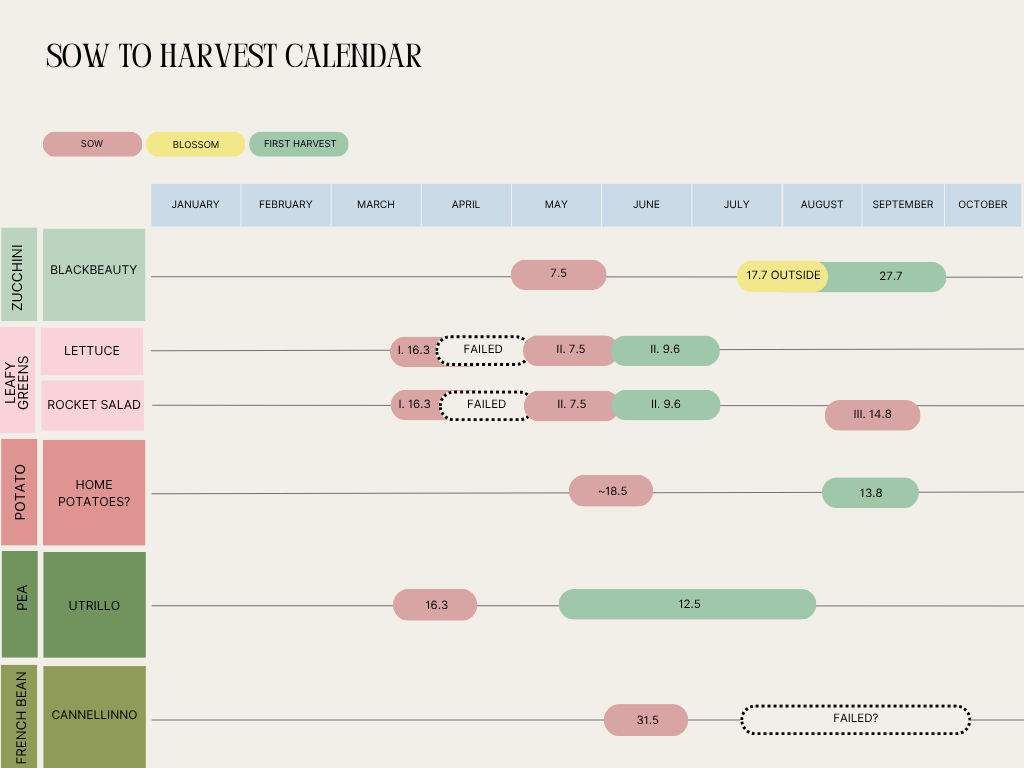 In the first Heartful Harvests post, I mentioned that the zucchinis were challenging our creativity when it came to finding ways to use them. And that is true: the zuccini was one of the most abundant plants. The interesting thing is that having planted one in a pot in the greenhouse and one outside in an open garden bed would yield such different results. Firstly, I took a conscious risk when I planted one of the zucchini plants in the 10L pot in the greenhouse. That experiment started promising, but didn’t end up so well. Managing to water it regularly and sufficiently was quite challenging, and so, the zucchinis grew all disfigured and dark green, if they made it so far as to grow into a fruit in the first place… It was a beautiful learning, after all. Now I know that squash needs a lot of space to grow.